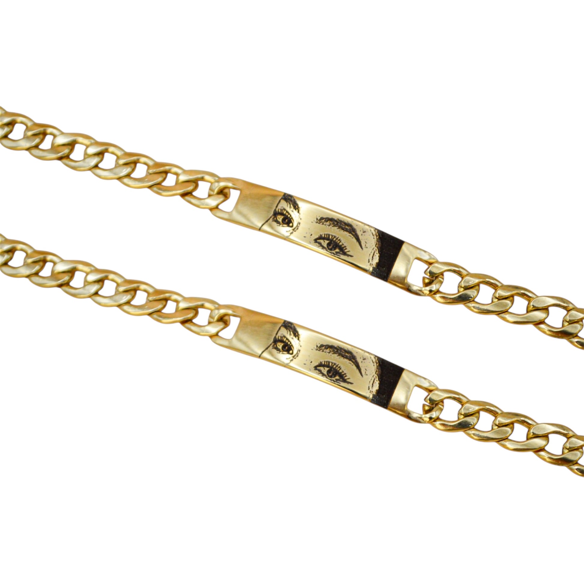 Dúo de esclavas de acero inoxidable personalizadas con tu mirada y la mirada de tu persona favorita. Diseñadas para acompañarte todos los días. Son resistentes al agua e hipoalergénicas.